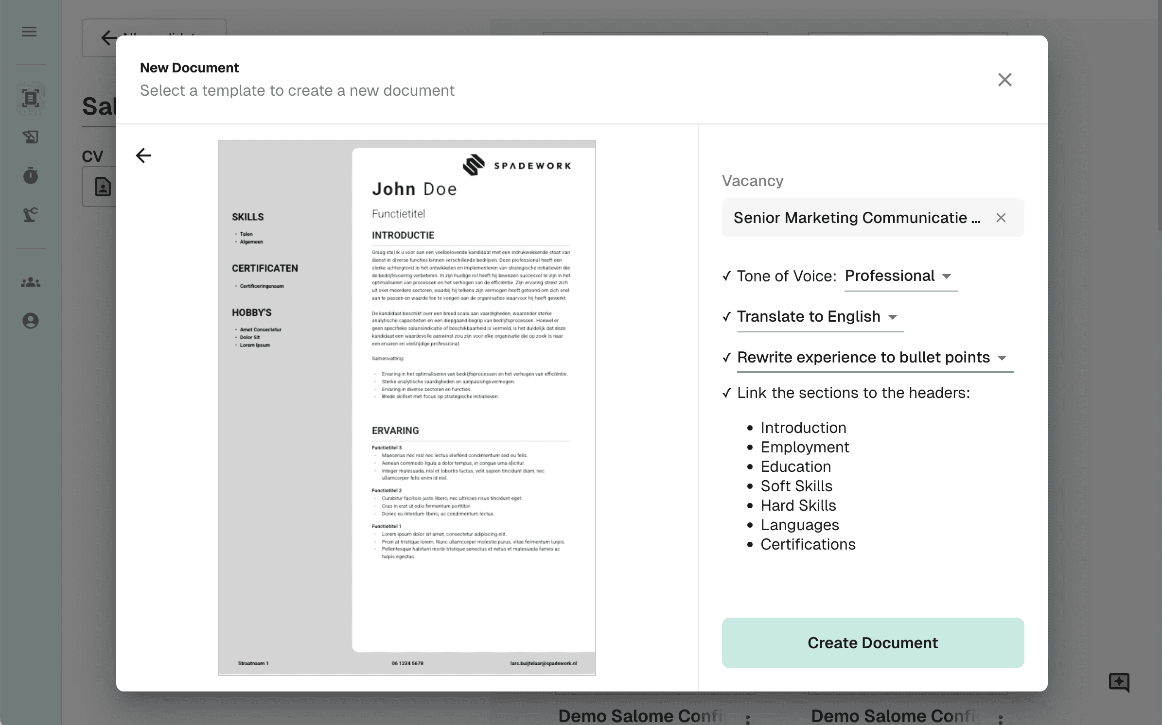 Zet het CV van je kandidaat in minuten om naar een strak, uniform profiel.
